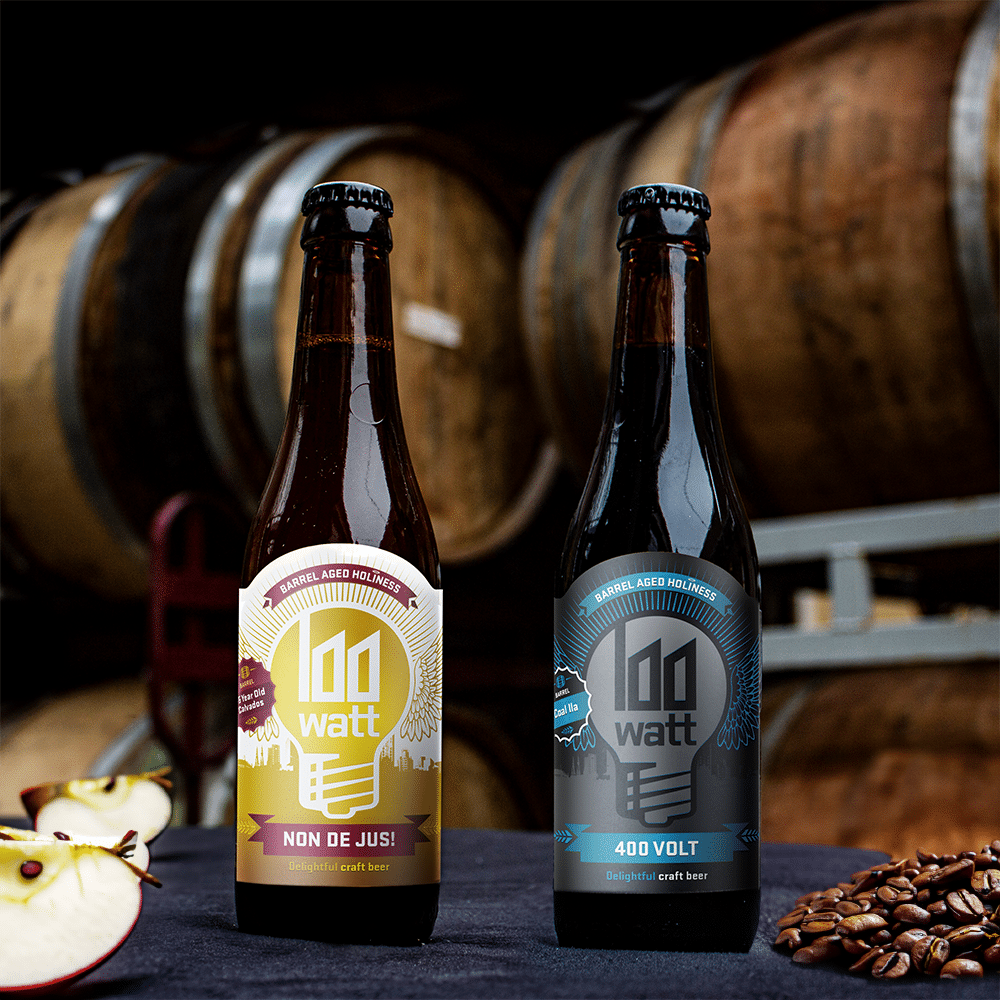 Vandaag releasen we twee nieuwe barrel aged bieren van 100 Watt Brewery: Non de Jus BA 45YO Calvados en 400 Volt BA Caol Ila. Allebei de bieren zijn niet onbekend met het Barrel-Aged proces maar nu verrassen we je graag weer met twee nieuwe unieke exemplaren.